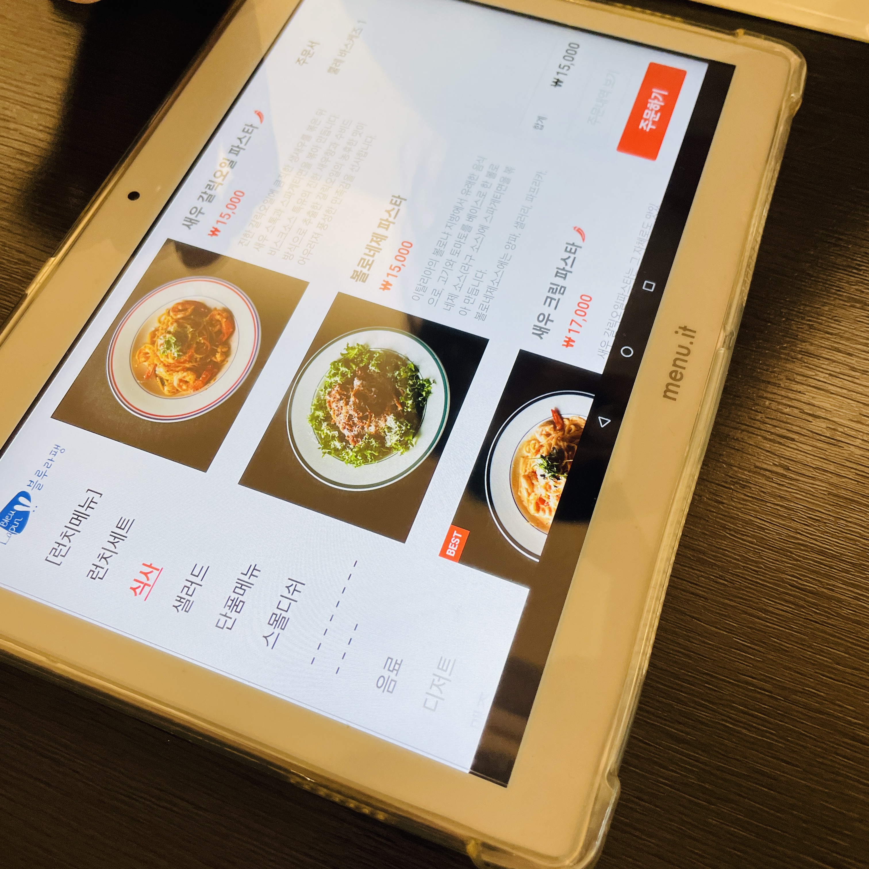 '블루 라팽'은 '파란 토끼'라고 하는데, '르 꼬르동 블루' 출신의 '토끼띠' 셰프님이 운영하는 곳이라고 하니, 그 네이밍 센스에 넌지시 고개를 끄덕이게 되는 곳. 가게 내부는 밖에서 보는 것보다 생각보다 넓지만, 의외로 적은 인원으로 가게를 운영한다고 생각이 되는데, 주문을 무려 아이패드로 받는다..!