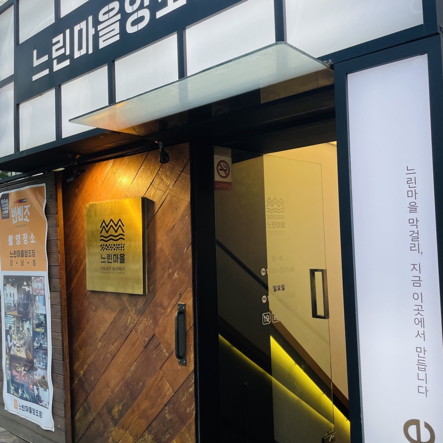 단체 예약을 하기 어려운 강남에서, 느린마을양조장 강남점은 20여명을 한번에 수용할 수 있는 룸을 가지고 있어 단체 예약을 하기에도 좋다. 트레이드마크인 수제막걸리는 그 숙성 농도에 따라 '봄, 여름, 가을, 겨울'로 흘러가는데, 달콤하고 가벼운 느낌의 막걸리부터 오랜 숙성으로 밸런스를 갖춘 막걸리까지 기호에 맞게 선택이 가능하다는 것이 특징이다. (취하다보면 이게 봄인지, 겨울인지 구분하기 힘들다는 것은 비밀)