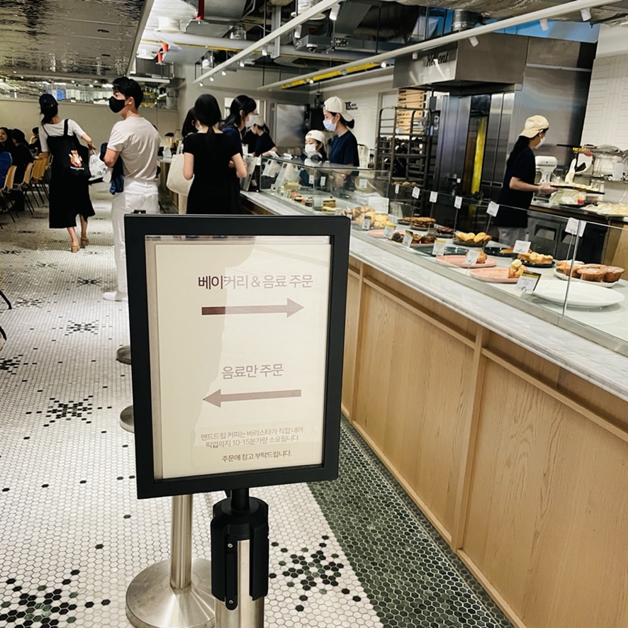 빠른 주문 진행을 위해 베이커리&음료 주문, 음료만 주문으로 줄을 나눠놓은 것은 버스시간에 맞추어 이동해야 하는 고객들에 대한 일종의 배려다. 그치만 서울 어느곳보다 '빨리빨리'가 익숙할 것 같은 센트럴시티에서 10~15분이 걸리는 핸드드립 커피는 왠지 상상하기가 힘들다. 매장 내부가 굉장히 넓고 혼자 기다리더라도 충분한 편이라, 누군가를 센트럴시티에서 만나서 이동하기로 약속했을 때 일찍 도착한다면 상대방을 기다리는 장소로는 합격이다.