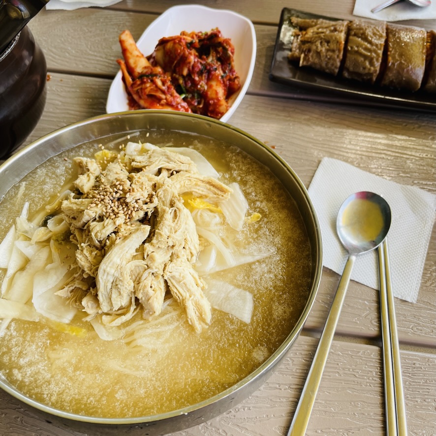 알싸한 겨자의 맛이 느껴지는 차가운 살얼음 육수는 그간의 힘듦을 싹 잊게 만들어주는 묘한 매력이 있다. 갖은 고명이 더해지지 않아도 백김치와 닭고기, 육수의 조화가 절묘한 편. 국수의 맛을 결정하는 또다른 요인이 '김치'일텐데, 전형적인 칼국수 가게에서 파는 스타일의 생김치로 초계국수 외에 다른 메뉴와 더 잘 어울릴 것 같은 맛이다. (하지만 역시 오리지널 초계국수가 제일 낫다.)