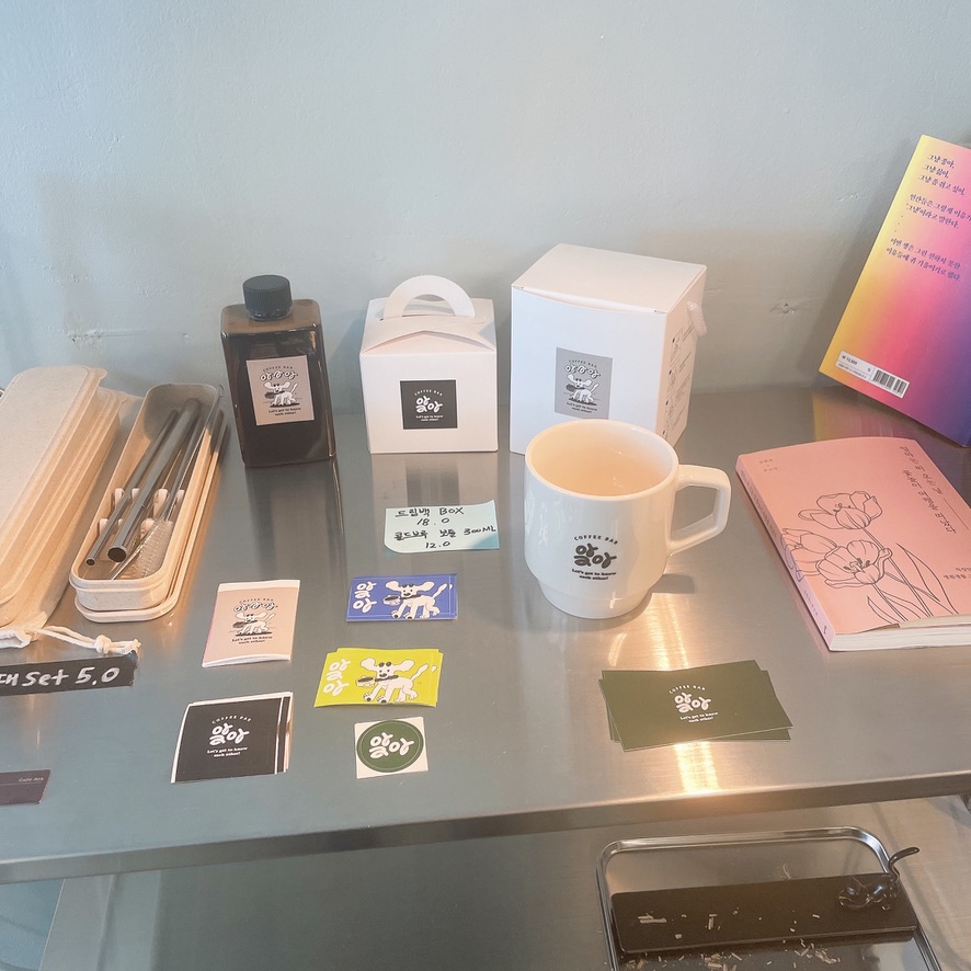 커피와 디저트 외에도 자그만한 굿즈들을 제작해서 판매하고 있는데, 이 또한 을지로 감성이 물씬 느껴지는 부분이다. (이 근방 상권과는 어울리지 않는 분위기를 추구하는 것 같아서 한편으로는 인상적이었다.)