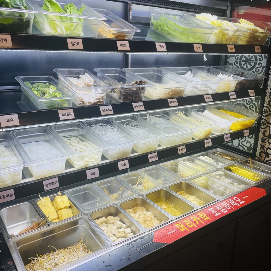 가게를 들어서면 바로 왼편에 각종 야채들이 가장 먼저 눈에 띄는데, 매우 다양한 재료들을 갖춰놓고 있지는 않지만 소박하면서도 갖춰야 할 필수 재료들은 모두 갖춘 느낌이었다. (문득 타이베이에서 황제마라훠궈의 휘황찬란한 셀프바가 떠오르는 건...) 개인적으로는 굵은 옥수수면을 좋아하는데 여기는 얇은 옥수수면 밖에 없다는 점이 아쉽기는 했다.